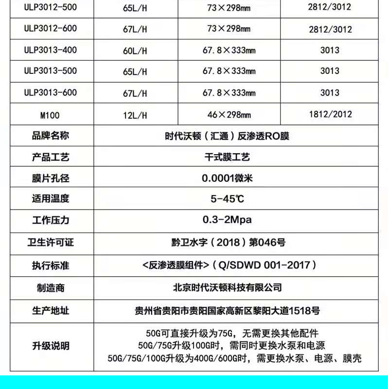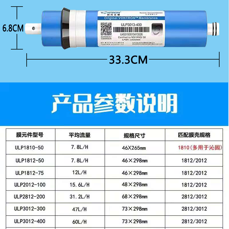 時代沃頓匯通RO膜3012/3013-400G 商用凈水器售水機通用反滲透濾芯
