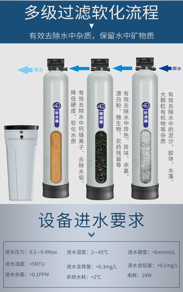 大型工業商用軟化水處理設備 農村地下水井水泥沙水垢鍋爐過濾機器